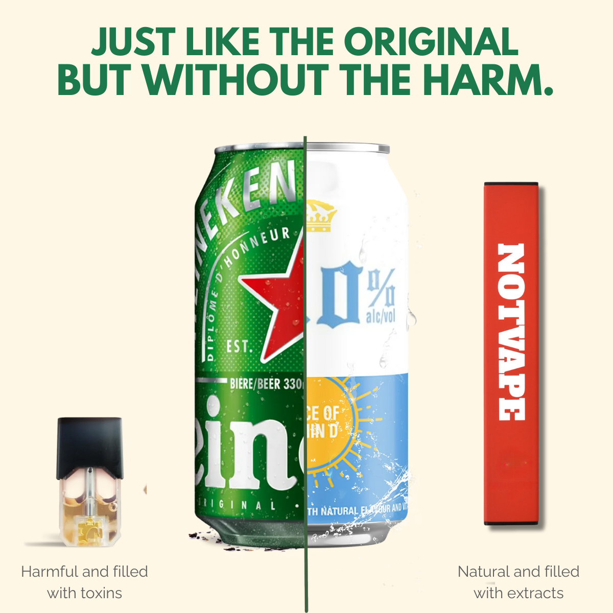 The NOTV*PE provides a subtle, refreshing sensation through its portable aromatherapy diffuser. A diffuser works by gently releasing natural botanical extracts into the air, allowing you to inhale their soothing properties. Our plant-powered goodness designed to help you overcome cravings and enjoy a calming experience.